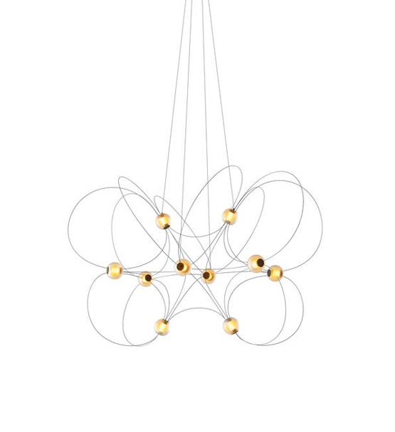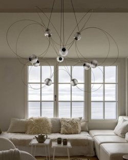 Munari strahlt ein kraftvolles, aber traumhaftes Licht aus und ist mit 6, 8 oder 10 Kugelschirmen und einer Struktur in Schwarz oder Gold erhältlich. Eine offensichtliche Wahl für das Wohnzimmer und Esszimmer oder einen Flur mit hoher Decke.