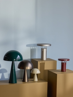Die Tischleuchte ist auch in einer größeren Ausführung und als wiederaufladbare Akkuleuchte in mehreren Farben erhältlich.