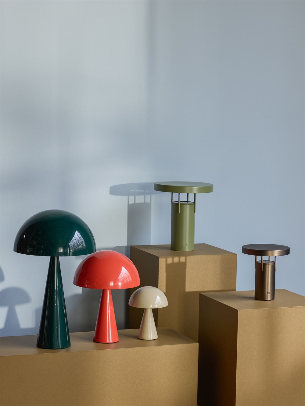 Die Tischleuchte ist auch in einer größeren Version und als wiederaufladbare Akkuleuchte in mehreren Farben erhältlich.