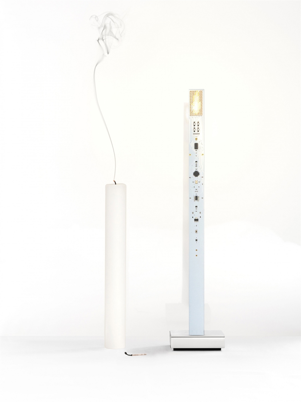 Ingo Maurer My New Flame Tischlampe in Weiß – entworfen 2012 von Moritz Waldemeyer und Ingo Maurer