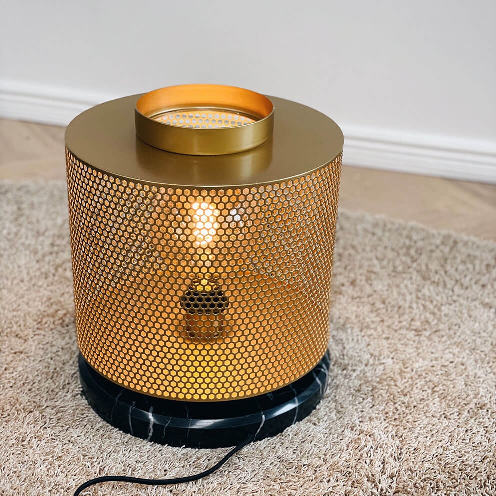 Die Nantes Tischlampe aus der Serie French Collection besticht durch ihr elegantes Design mit einem schönen Messingnetz als Schirm und einem Sockel aus schwarzem Marmor. Die Tischlampe erzeugt ein schönes Licht und ist ein auffälliges Element in der Einrichtung. Sie passt unter anderem gut auf den Schreibtisch oder das Regal.