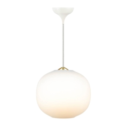 Die elegante und stilvolle Pendelleuchte wirft ein angenehmes Licht in den Raum mit dem opalen Schirm, der das Licht gedämpft und diffus erscheinen lässt. Navone ist aus Glas und Metall gefertigt und hat kleine Details aus Messing, die der Pendelleuchte eine feminine Note verleihen.