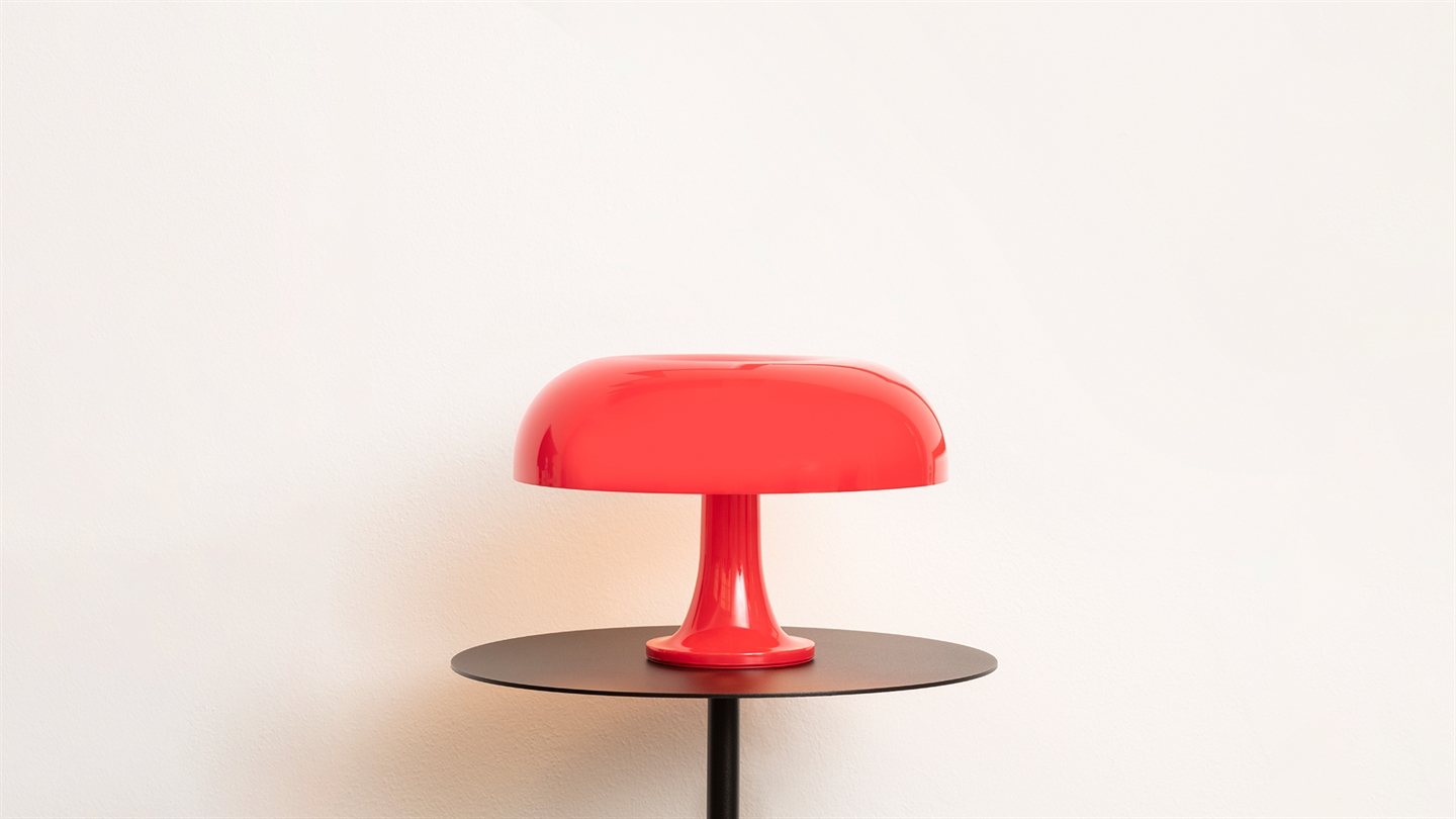 Artemide Nessino Tischleuchte, rot - entworfen von Giancarlo Mattioli, Gruppo Architetti Urbanisti & Città Nuova.