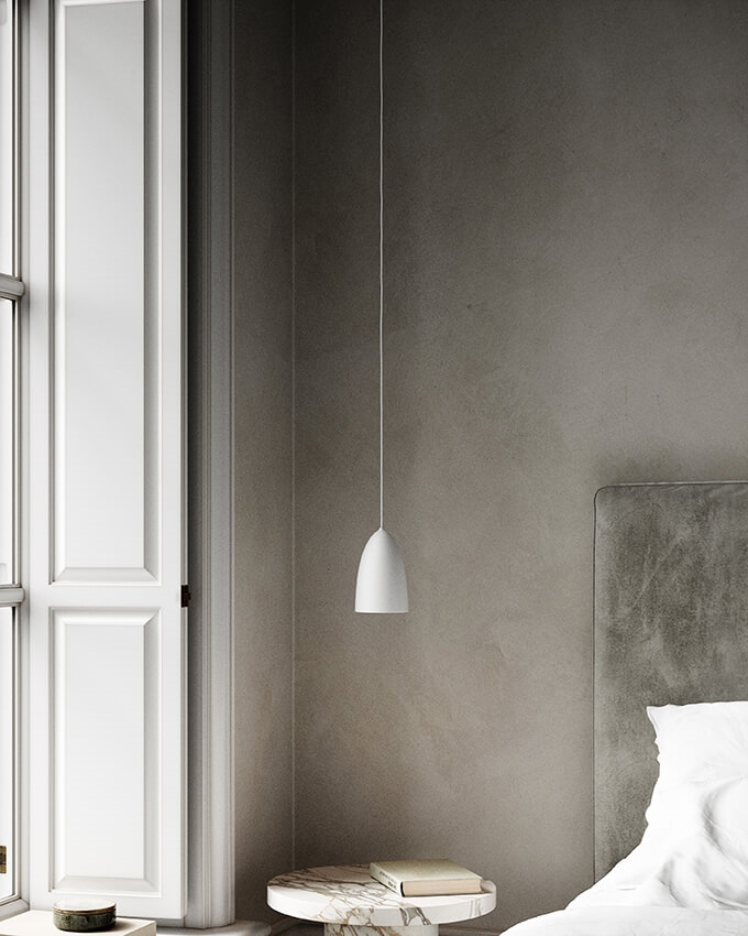 Die Nexus Pendelleuchte hat ein minimalistisches und zeitloses Design, bei dem der Schirm eine satinmatte Oberfläche hat. Die Pendelleuchte verfügt über einen Diffusor, der die Lichtquelle abschirmt, wodurch das Licht weich und gedämpft im Raum erscheint.