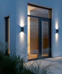 Die elegante Nico Square 22 Außenwandleuchte passt mit ihrer kantigen Silhouette sowohl zu klassischer als auch moderner Architektur. Das Licht strahlt sowohl nach oben als auch nach unten und erzeugt einen schönen Lichteffekt an der Wand. Einfach im Außenbereich zu installieren, wo die moderne Wandleuchte in den dunklen Stunden schön leuchtet.