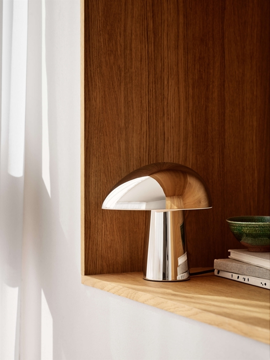 Night Owl Tischlampe, polierter Stahl, entworfen von Nicholai Wiig Hansen für Fritz Hansen.