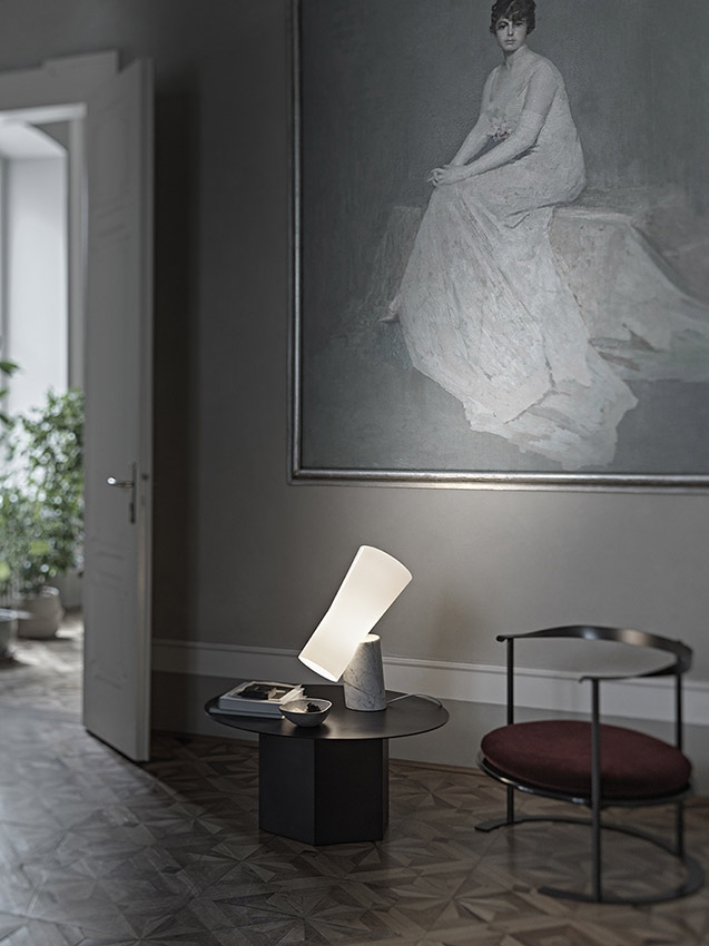 Foscarini NILE Tischlampe, weißer Marmor – entworfen von Rodolfo Dordoni.