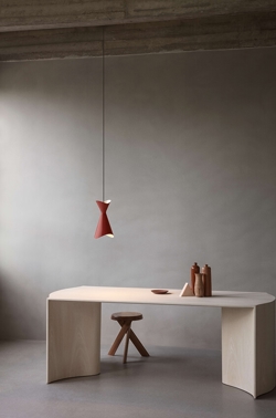 Die Form der Ninotchka Pendelleuchte wurde von Bent Karlby entworfen, der sich von der schwedischen Hollywood-Schauspielerin Greta Garbo inspirieren ließ, die in einem Film von 1939 einen auffälligen Hut trug. Die Form des Hutes diente als Inspiration für die Form der Pendelleuchte.