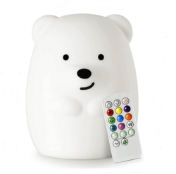 Die niedlichen Kinderlampen schaffen eine sichere und spielerische Umgebung im Kinderzimmer. Die kleinen Freunde können in 9 verschiedenen Farben leuchten und werden einfach mit der mitgelieferten Fernbedienung gesteuert. Der Akku hält bis zu 12 Stunden mit einer einzigen Ladung, kann jedoch je nach Farbeinstellung variieren. Zusätzlich kann man mit der Fernbedienung die Helligkeit einstellen und den Schlaf-Timer auf 15, 30 oder 60 Minuten setzen, sodass die Lampe automatisch ausgeht, wenn die Kinder abends eingeschlafen sind.