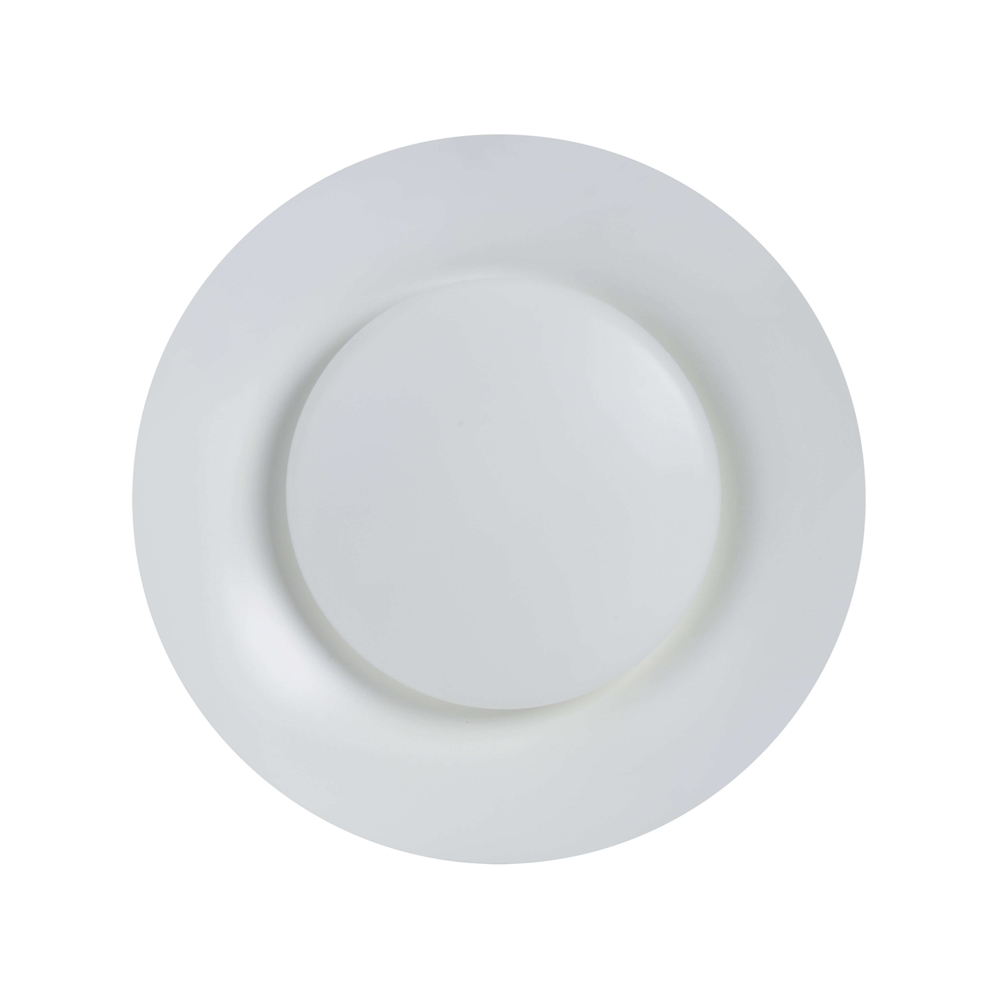 Nivora 45 mit E27-Fassung kann als Deckenleuchte oder Wandleuchte verwendet werden und hat einen breiten, gebogenen Schirm mit einer matten weißen Oberfläche. Das Design sorgt für ein gleichmäßiges und angenehmes blendfreies Licht in der Umgebung und macht die Leuchte ideal für das Wohnzimmer, Schlafzimmer oder den Eingangsbereich.