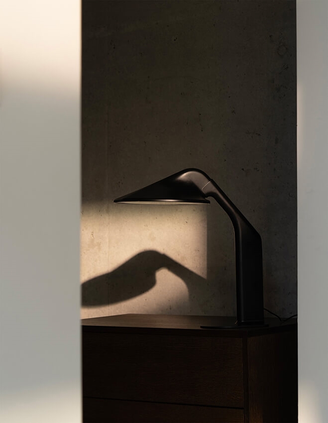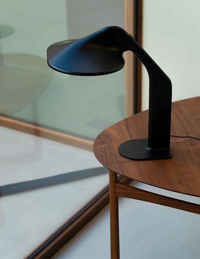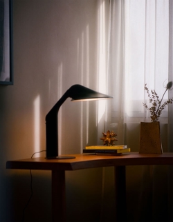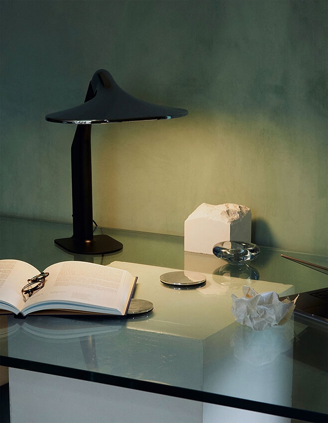 Die Tischlampe ist sowohl in Schwarz als auch in Chrom erhältlich.