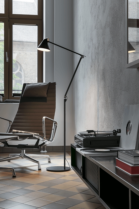 Die NJP Stehleuchte eignet sich perfekt als Leselicht neben dem Sessel oder Sofa.