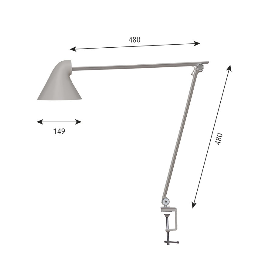 Die NJP Lampenserie ist eine moderne Neuinterpretation der klassischen Architektenlampe - perfekt als Schreibtischlampe. Die Tischleuchte mit Tischklemme hat ein äußerst funktionales Design, bei dem sowohl Schirm als auch Arme verstellbar sind, sodass das Licht nach Bedarf angepasst werden kann.