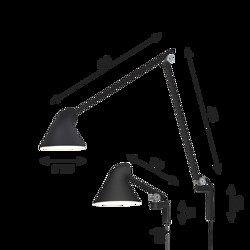 Die NJP Lampenserie ist eine moderne Neuinterpretation der klassischen Architektenlampe. Die Wandleuchte hat ein äußerst funktionales Design, bei dem sowohl der Schirm als auch die Arme verstellbar sind, sodass das Licht an die individuellen Bedürfnisse angepasst werden kann.