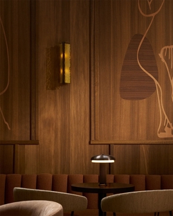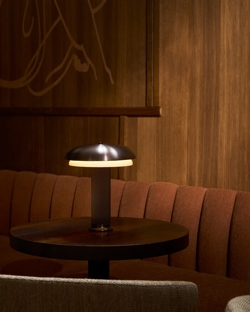 Die tragbare Tischleuchte Noote bietet ein sanftes und überwiegend indirektes Licht, das eine warme Atmosphäre schafft. Die wiederaufladbare Akkuleuchte wurde für die intime Atmosphäre des kombinierten Restaurants und Jazzclubs Epicurus in Kopenhagen entworfen und ist inspiriert vom Jazz, eine Mischung aus Nostalgie und Modernität mit zeitloser Eleganz des Designs der 1930er Jahre in einer modernen Interpretation.