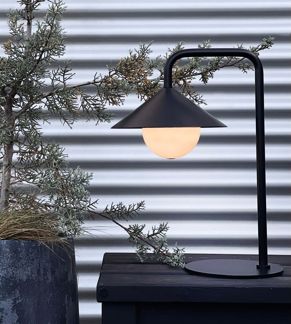 Die Tischleuchte Nova Outdoor vereint eine moderne nordische Formensprache mit praktischer Funktionalität in einer Leuchte, die dafür gemacht ist, Sie überallhin zu begleiten. Der charakteristische, kegelförmige Schirm umschließt eine abnehmbare Lichtkugel, die elegant durch einen starken Magneten gehalten wird. Wird die Lichtkugel abgenommen, kann sie als eigenständige Lichtquelle genutzt werden – perfekt, um kleine Lichtpunkte im Garten oder im Innenbereich zu setzen.