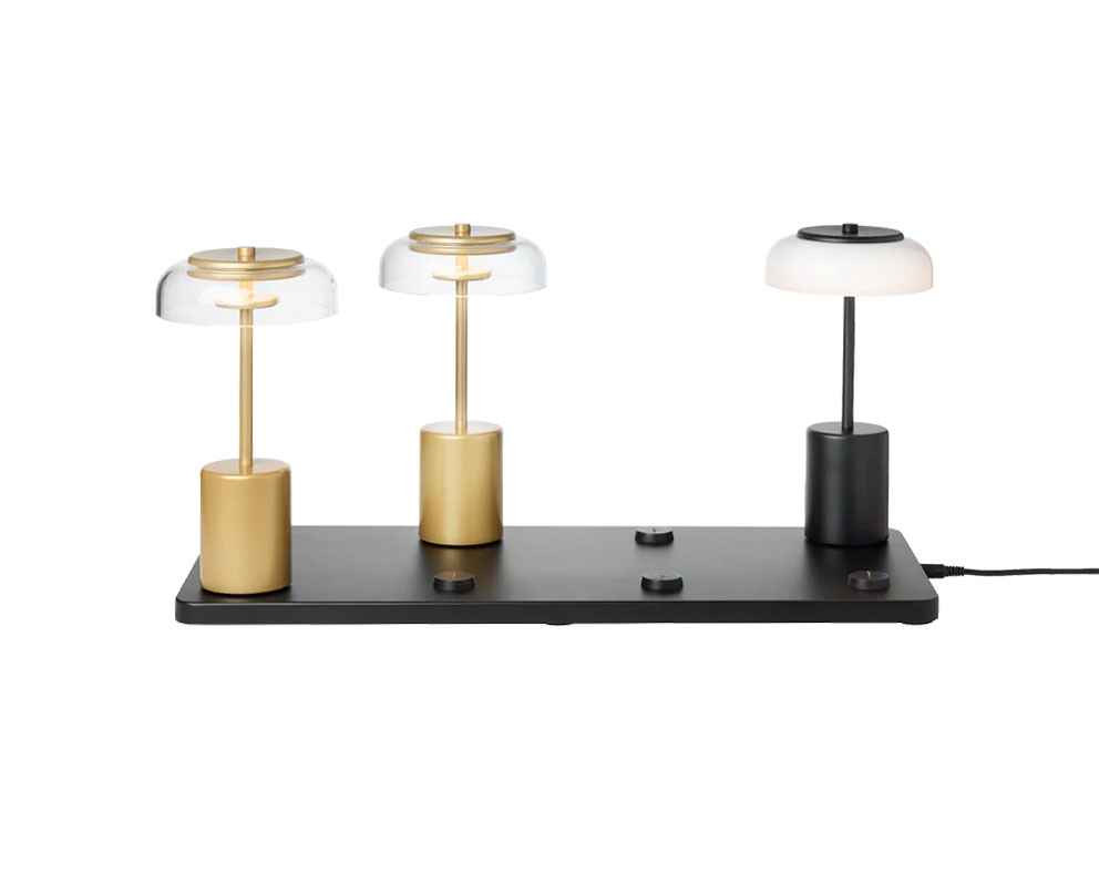 Multiladebasis zum Aufladen von bis zu acht wiederaufladbaren Tischlampen der Varianten Blossi Mini Portable oder Asteea Portable von Nuura.