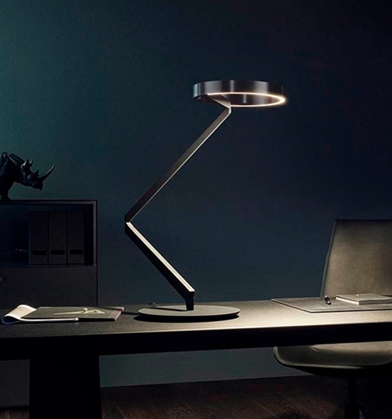 Die Gioia Tischleuchte verfügt über 'Occhio Air', sodass Regulierung, Einstellung und Dimmung auch über eine App auf dem Mobiltelefon erfolgen können.