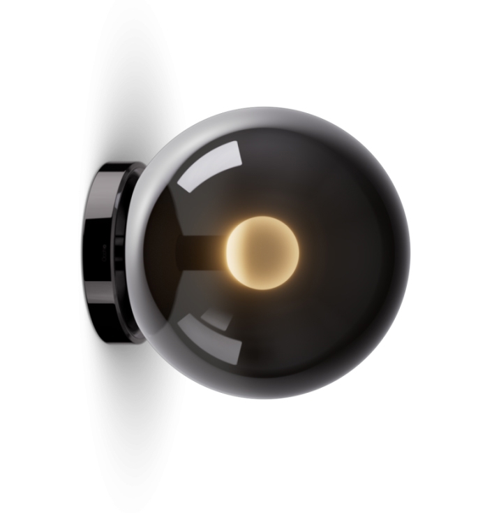 Occhio Luna Scura verwandelt Ihre Wand in ein lebendiges Lichtkunstwerk. Die patentierte Occhio Fireball schwebt frei in der Glaskugel und spiegelt sich in der spiegelnden Oberfläche wider, was ein weiches, gerichtetes und blendfreies Licht erzeugt. Das Licht verändert sich subtil je nach Ihrem Standort und verleiht dem Raum eine dynamische, fast mystische Atmosphäre, inspiriert vom Mond.