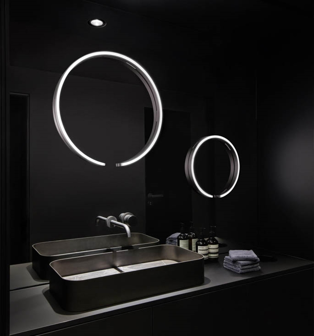 Mito sfera su wird auf einem Spiegel montiert und sorgt für eine blendfreie und fantastische Beleuchtung des Gesichts.