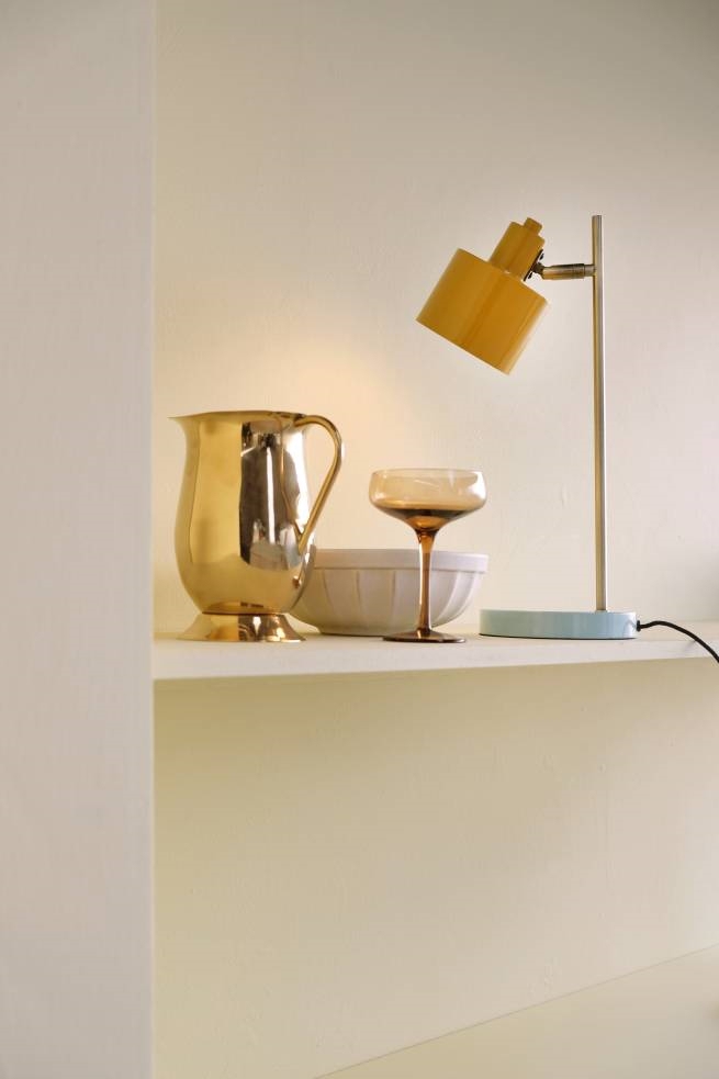 Die Ocean Tischlampe besticht durch ihr Retrodesign und harmonisches Farbspiel, das jedem Zuhause frischen Wind verleiht. Sie schmückt sowohl das Schlafzimmer als auch das Wohnzimmer. Der Schirm ist verstellbar, sodass das Licht nach Wunsch ausgerichtet werden kann.