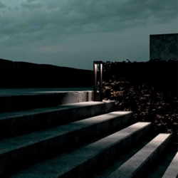 Odin ist eine moderne schwarze Außenleuchte. Sie besteht aus einem schwarzen Druckguss-Aluminiumrahmen mit klarem gehärtetem Glas und integrierter LED.