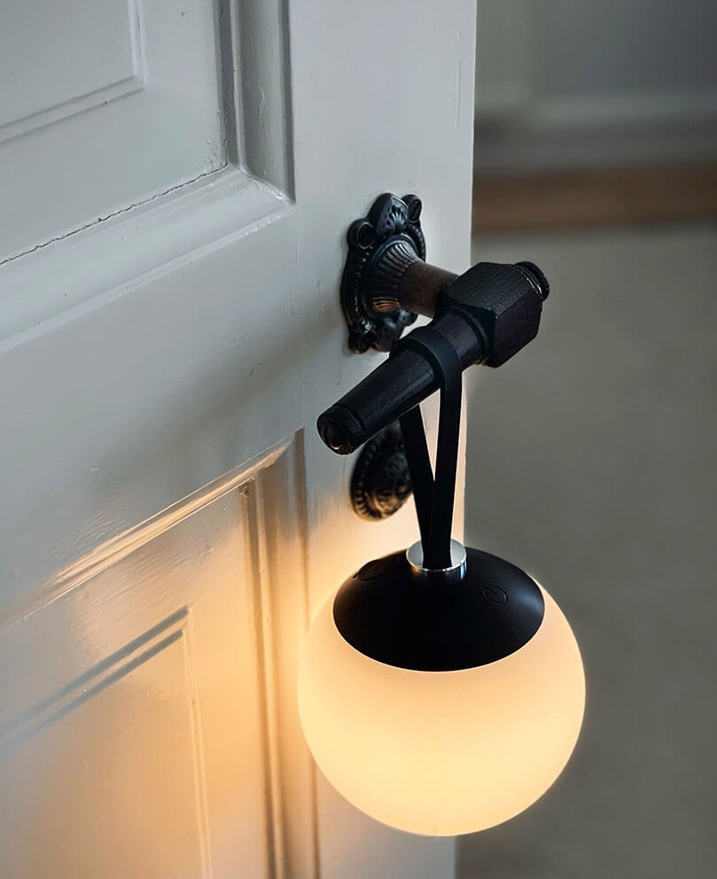 Der flexible Silikonriemen von Odin macht es einfach, die Lampe mitzunehmen oder sie an einem Baum oder auf dem eleganten mitgelieferten Tischständer aufzuhängen.