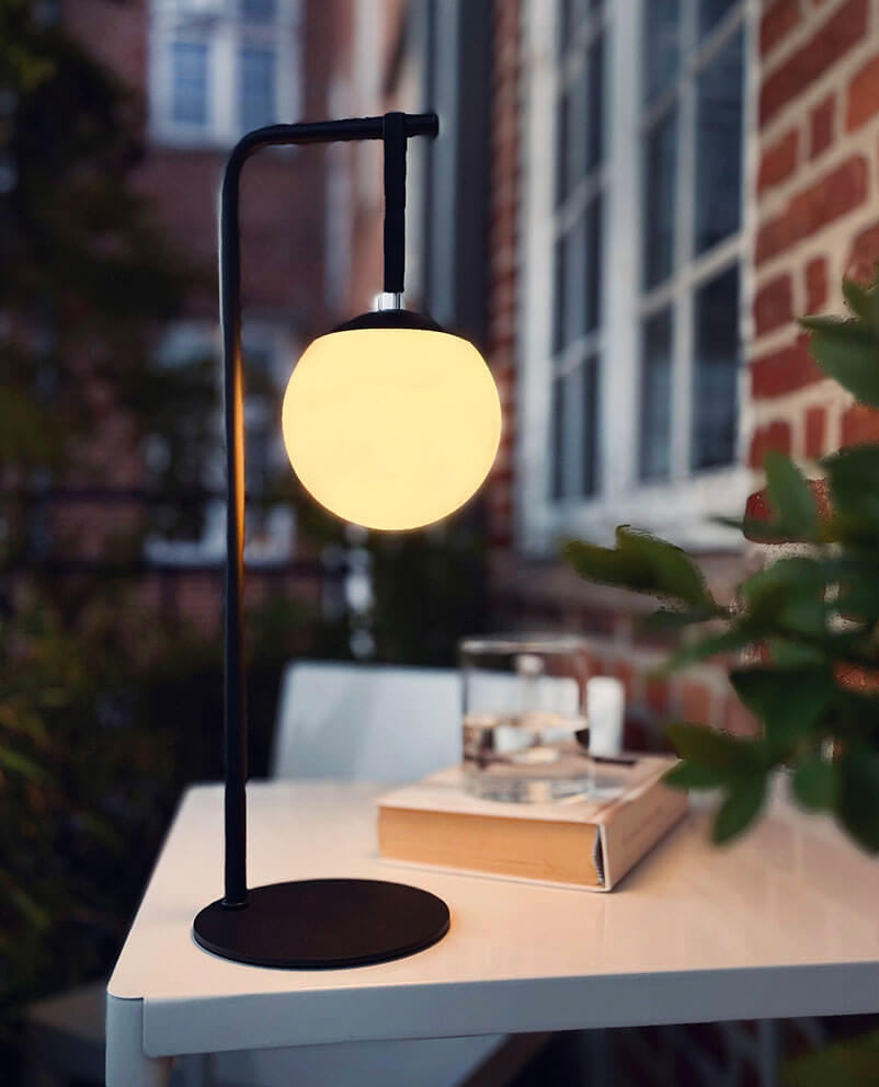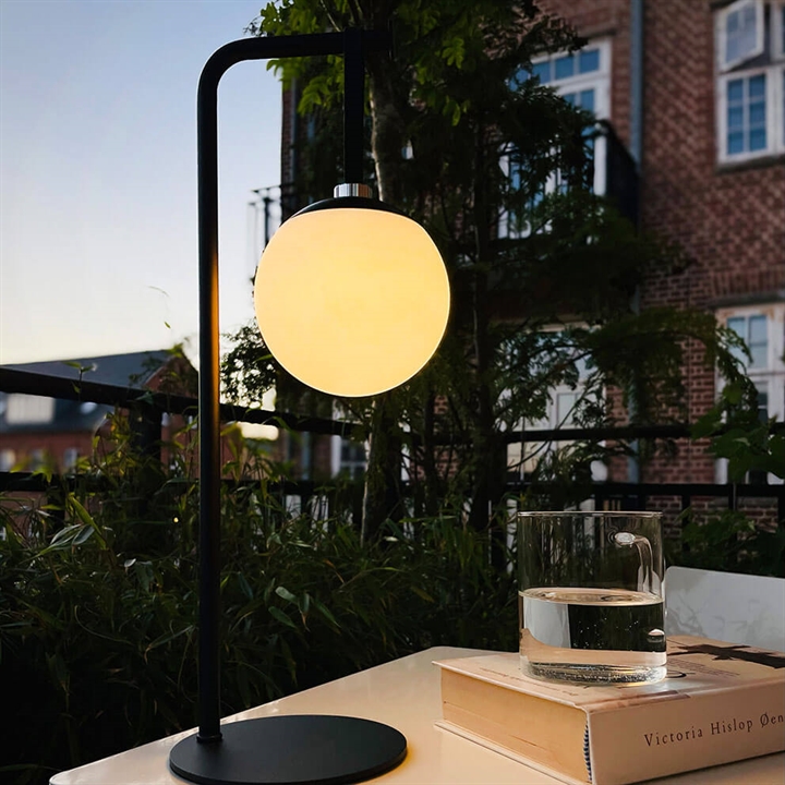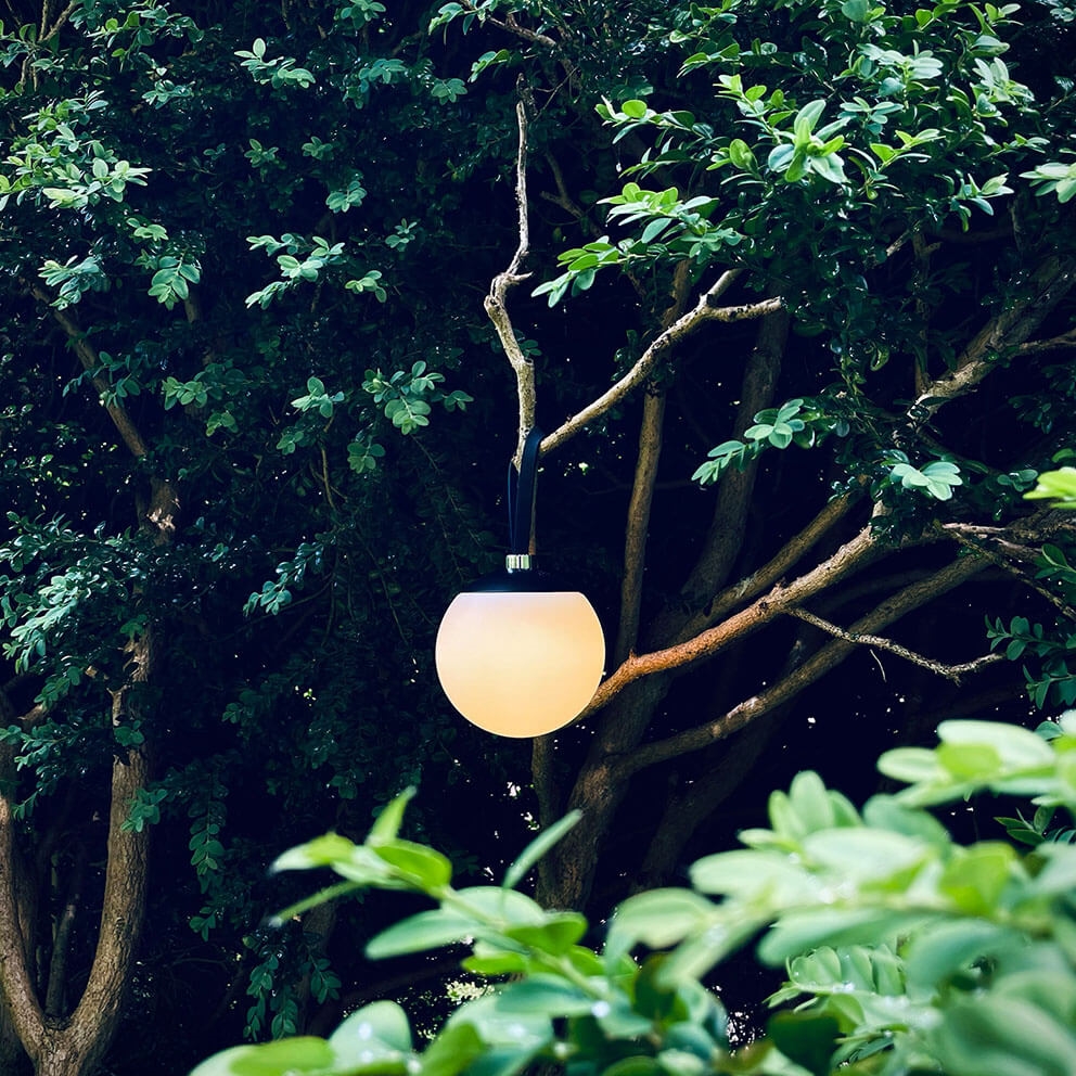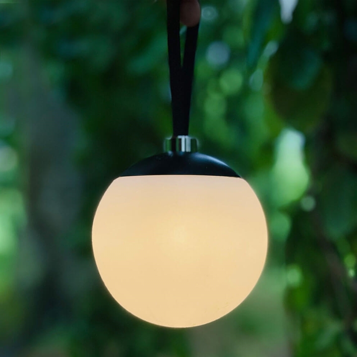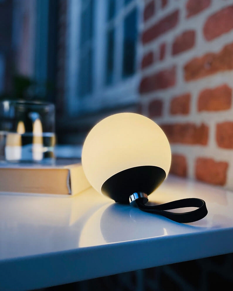 Odin Outdoor Lichtball / Batterielampe mit Riemen und Tischständer, schwarz/weiß