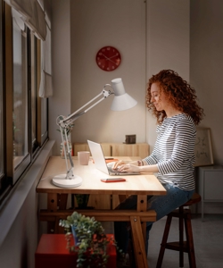Der lange, verstellbare Arm und der bewegliche Lampenkopf ermöglichen es, das Licht präzise nach Bedarf anzupassen – egal, ob Sie am Computer arbeiten, von Hand schreiben oder sich in detaillierte Arbeiten vertiefen. Die Lichtstärke kann stufenlos reguliert werden, sodass Sie immer das richtige Niveau finden, von sanftem Stimmungslicht bis hin zu effektiver Arbeitsbeleuchtung.