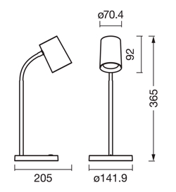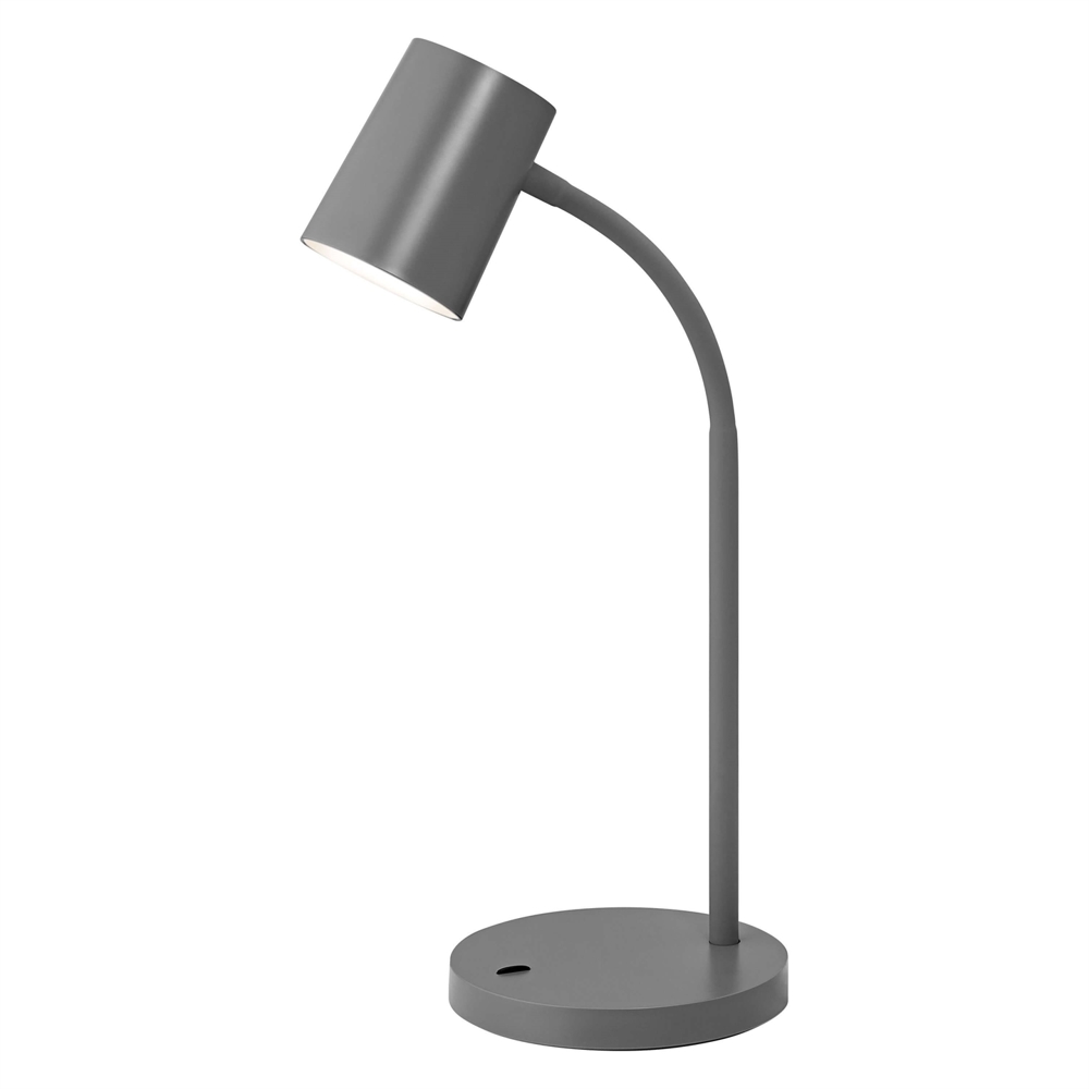 Die Lampe ist in Schwarz, Weiß oder Grau erhältlich. Es gibt auch Varianten mit Klemme statt Lampenfuß für flexible Montage an Tischplatten, Regalen oder Ablagen.