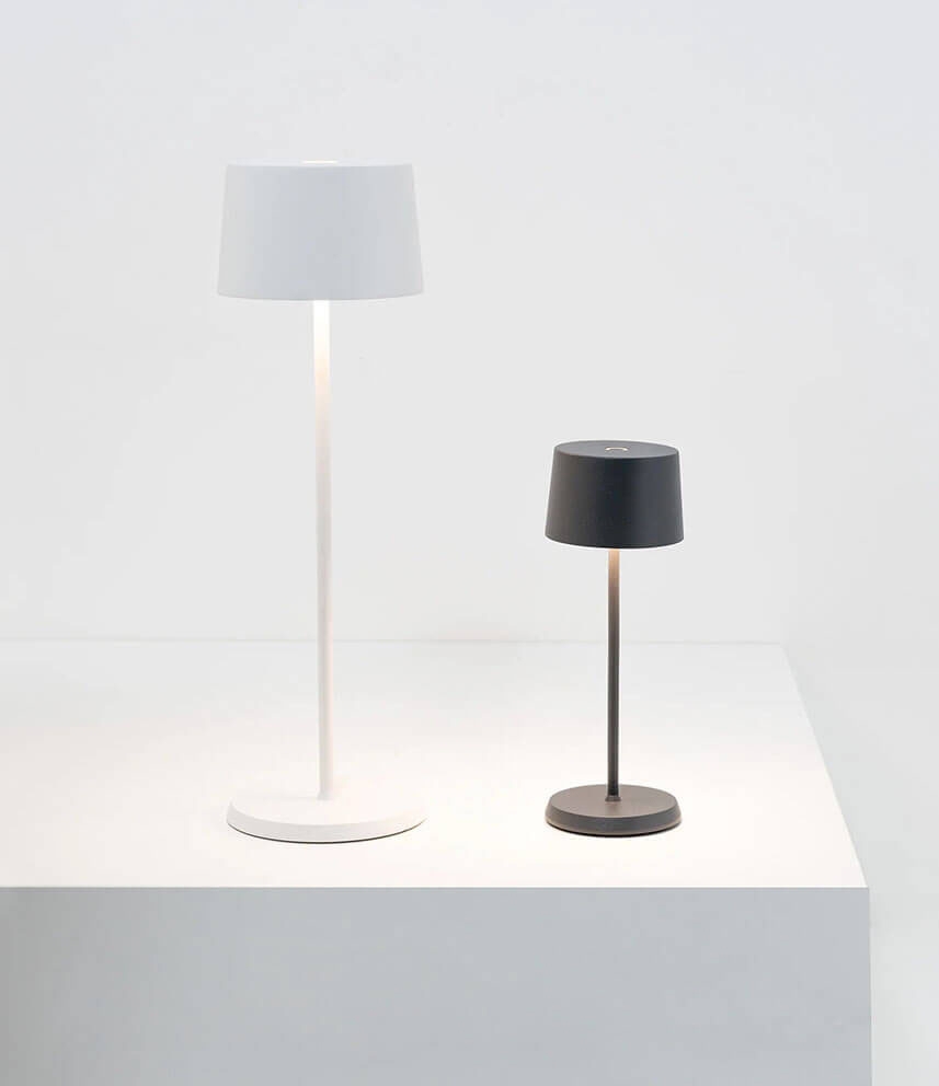 Olivia in Weiß und Olivia micro in GrauOlivia Akkulampe, Corten