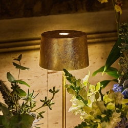 Olivia ist aus Druckguss-Aluminium gefertigt und in verschiedenen Ausführungen erhältlich, von denen die meisten sowohl für den Innen- als auch Außenbereich geeignet sind. Diese Variante in antik gold ist nicht für den dauerhaften Außeneinsatz empfohlen. Alle Varianten müssen im Innenbereich aufgeladen werden.