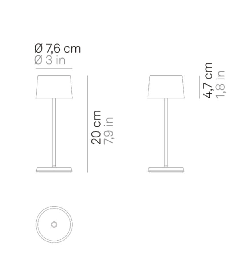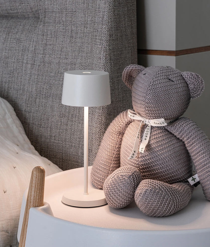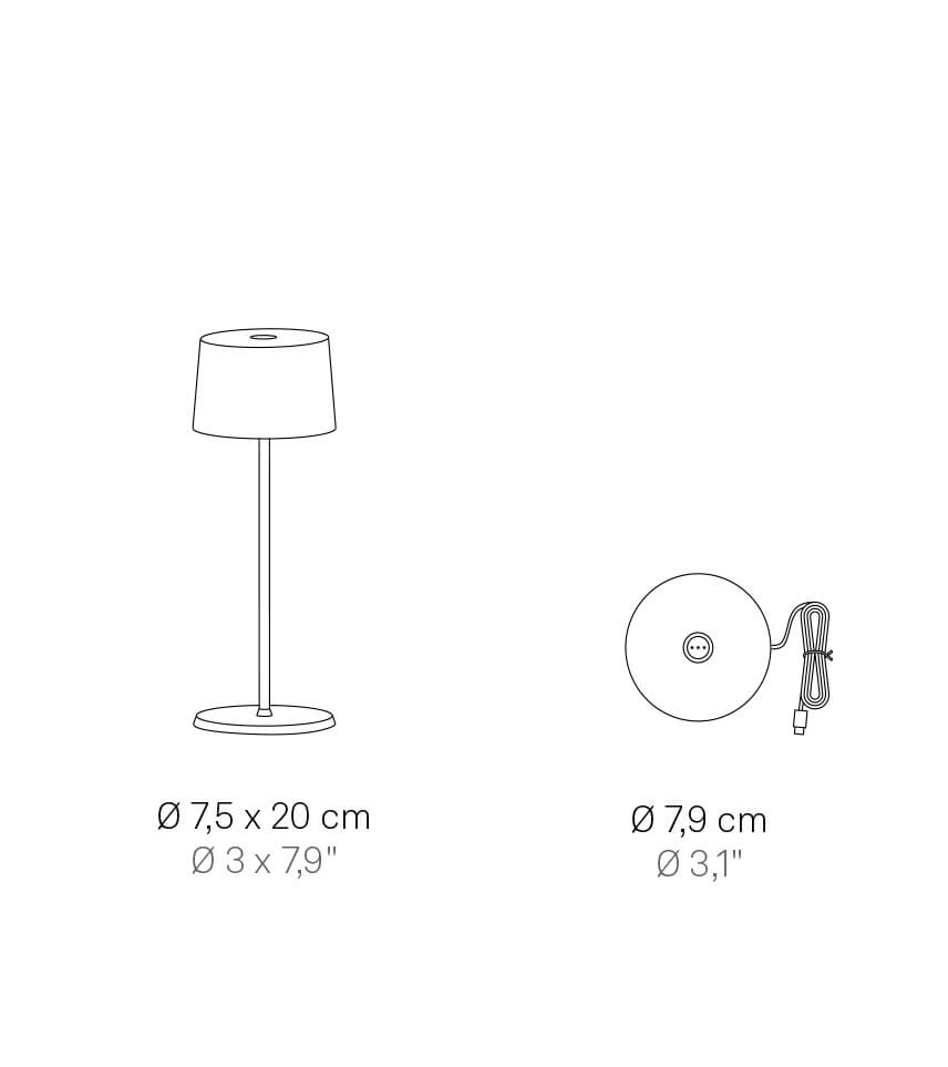 Die Batterielampe Olivia micro ist eine kleinere Version der beliebten tragbaren Tischlampe Olivia. Die kleine wiederaufladbare Lampe kann dank ihrer IP65-Klassifizierung sowohl drinnen als auch draußen verwendet werden.