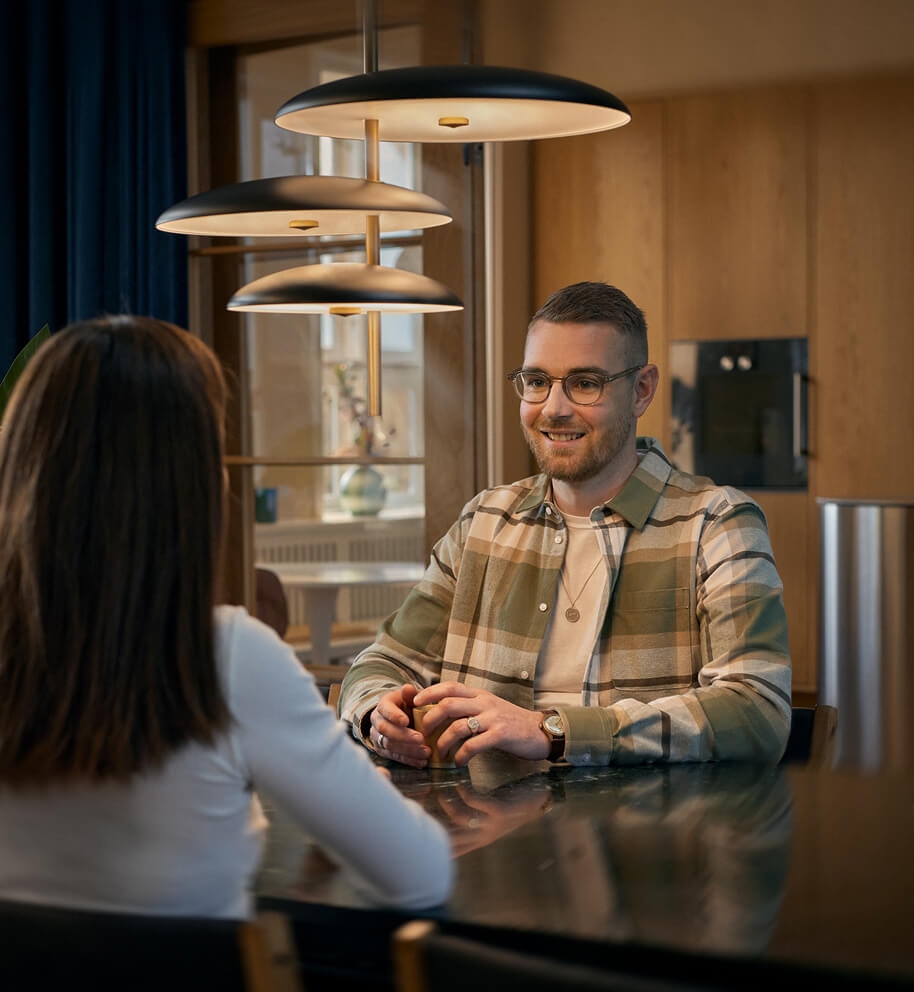 Hängen Sie zum Beispiel Ihre Onism Pendelleuchte im Wohnzimmer auf und genießen Sie das schöne Design und das feine Licht.