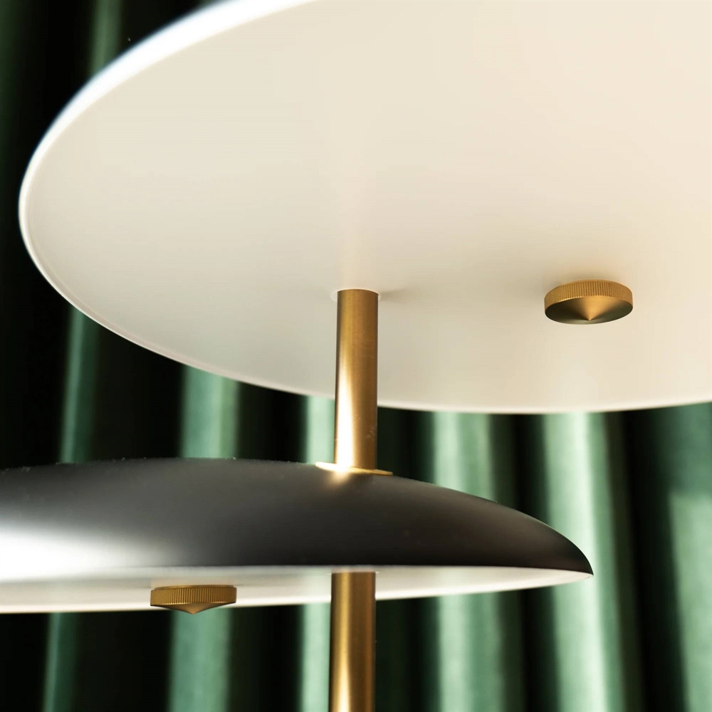 us massivem Messing und gedrehtem Aluminium gefertigt. Dies verleiht der Lampe einen exklusiven Ausdruck, und man spürt sofort das gute Handwerk und die hochwertigen Materialien.