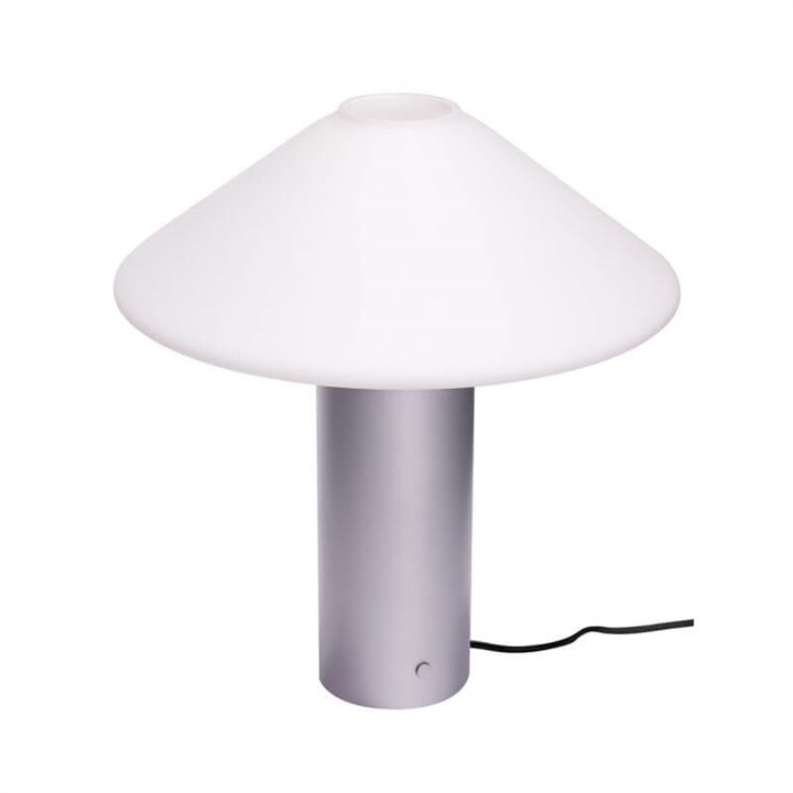 Die Tischlampe Orbit vereint Funktionalität mit elegantem Design. Mit ihrem weißen Schirm aus mundgeblasenem Opalglas verbreitet die Lampe ein weiches und angenehmes Licht im Wohnzimmer, Büro oder jedem anderen Raum, während die metallische Oberfläche der Basis in Silber zu einer stilvollen Einrichtung beiträgt.