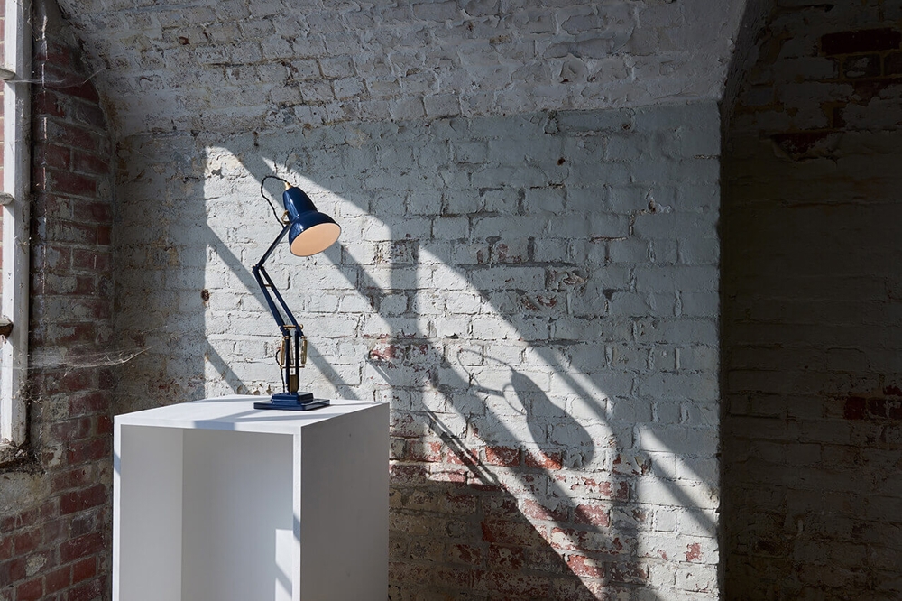 Anglepoise Original 1227 Tischlampe, Messing/Blau.