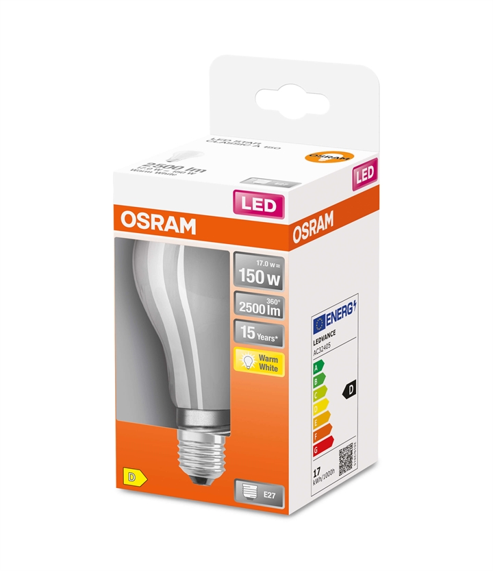 Osram LED-Birne mit E27-Sockel 17W 827 (2452lm - 2700K - 15000 Stunden), matt