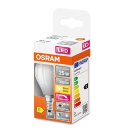 Osram dimmbare LED-Lampe mit E14-Sockel 2,2W 927 (300lm - 2700K - 15000 Stunden), matt