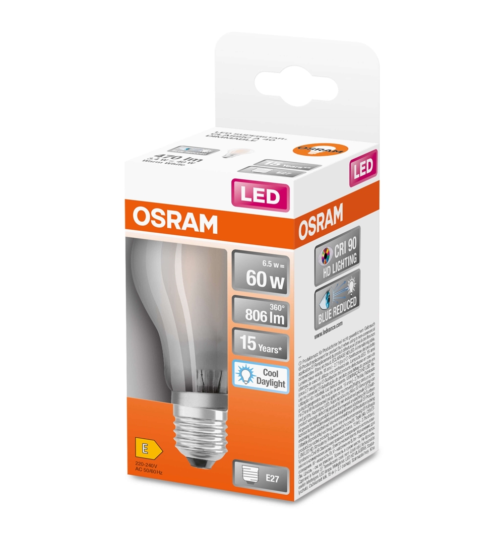 Osram dimmbare LED-Lampe mit E27-Sockel 3,4W 927 (470lm - 2700K - 15000 Stunden), matt