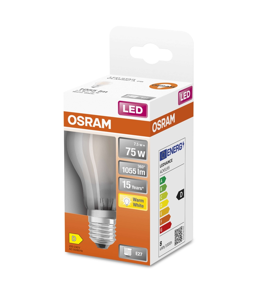 Osram LED-Lampe 7,5W E27 827, matt