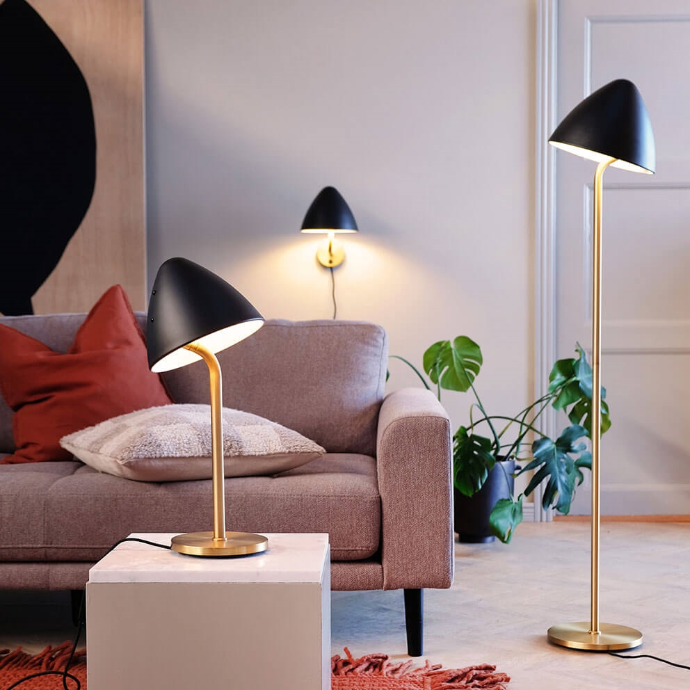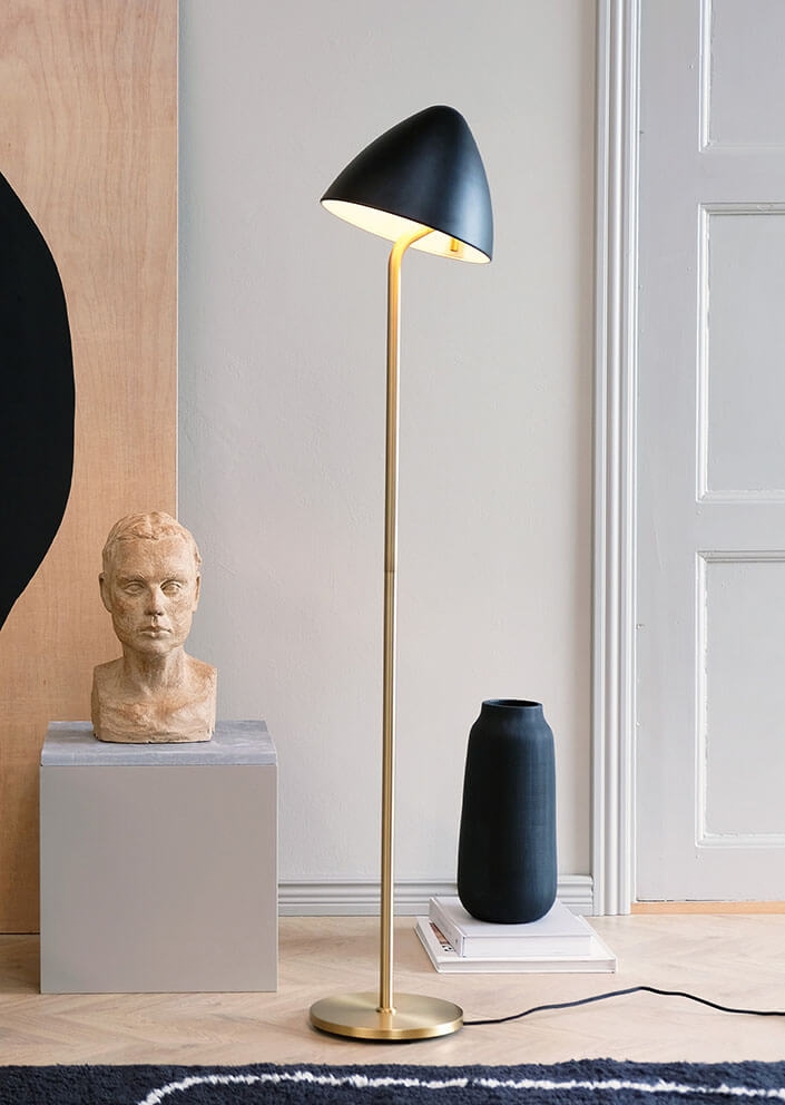 Dyberg Larsen Oulu Stehlampe, schwarz/messing - entworfen von Tom Stepp