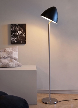Dyberg Larsen Oulu Stehlampe, schwarz/gebürsteter Stahl - entworfen von Tom Stepp