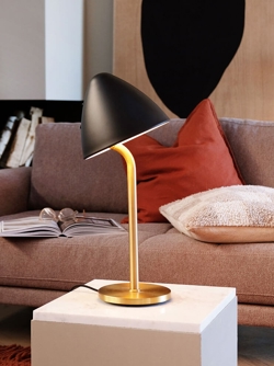 Dyberg Larsen Oulu Tischlampe, schwarz/messing - entworfen von Tom Stepp