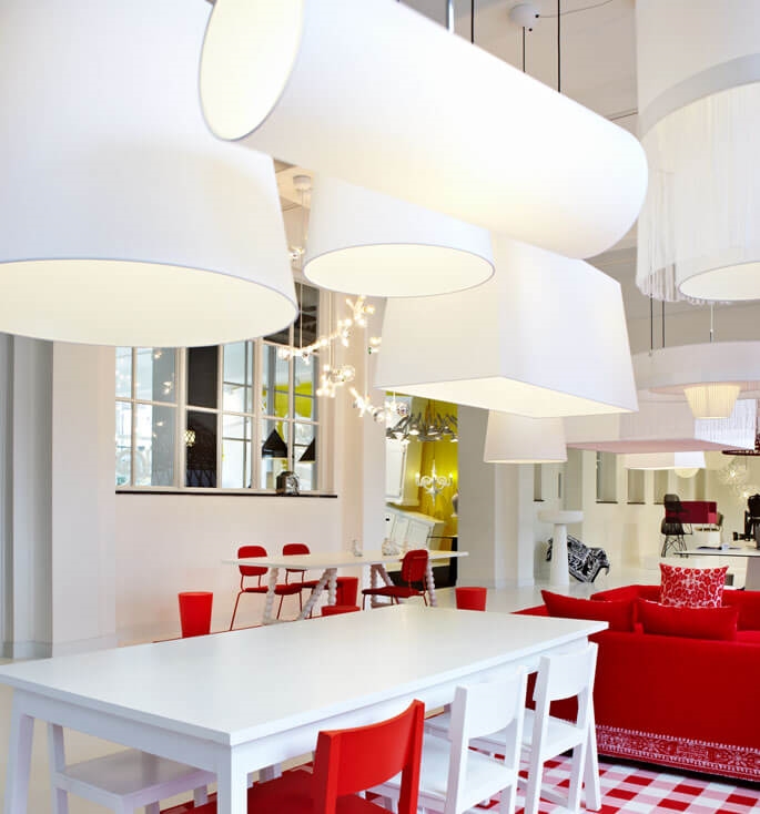 Die einzigartige Pendelleuchte hat eine Form, die sich leicht mit anderen Lampen kombinieren lässt.