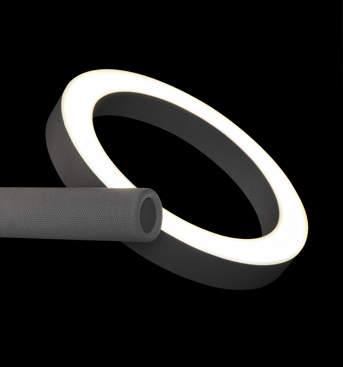 Die Leuchte besteht aus Metallrohren mit Armen aus gestricktem Stoff. Die Aluminiumringe sind pulverbeschichtet, und zusätzlich verfügt die Pendelleuchte über Kunststoff-Diffusoren. Pallana Light hat nicht nur ein einzigartiges Äußeres, sondern auch viele funktionale Eigenschaften. Zudem lässt sich die Pendelleuchte ganz einfach über Wireless Wall Switch, DALI dt6 Dimmung oder per Push / Pulse dim On Line Voltage dimmen.