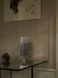 Die Tischleuchte Pan 190 ist ein schönes und dekoratives Design von Bent Karlby, inspiriert von der Panflöte. Das Design besteht aus glänzenden Leuchtröhren aus eloxiertem Aluminium, die gut zu vielen modernen Einrichtungen passen.