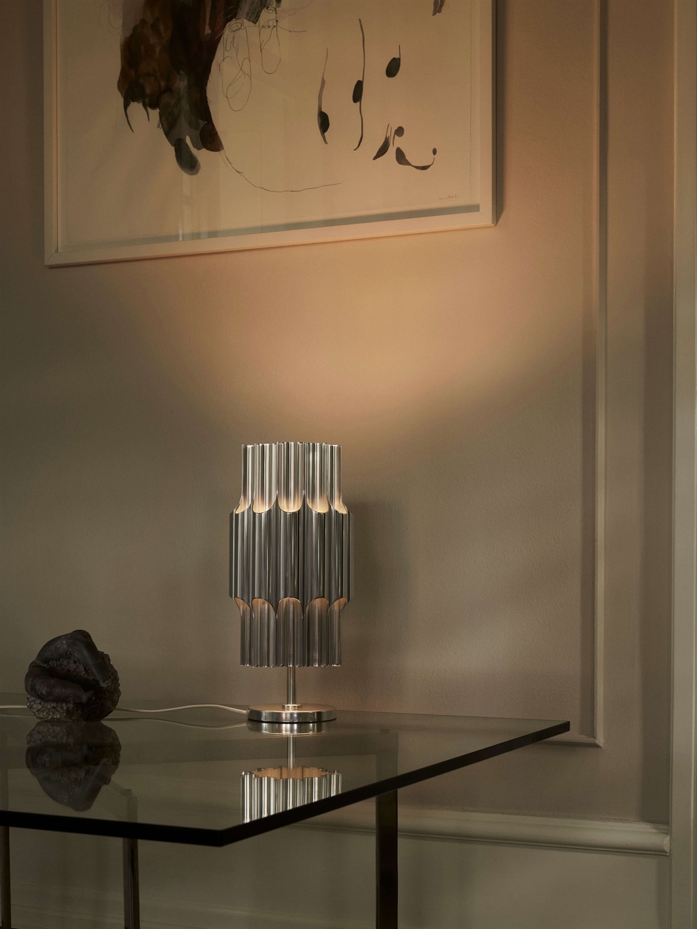 Die elegante Tischleuchte besteht aus 12 Aluminiumröhren, die von den offenen Röhren schön beleuchtet werden. Die Leuchtröhren lenken das Licht sowohl nach oben als auch nach unten. Das nach oben gerichtete Licht sorgt für eine dezente Umgebungsbeleuchtung, während das nach unten gerichtete Licht eine angenehme Beleuchtung am Tisch gewährleistet.