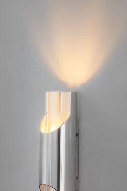 Das Design mit dem offenen Leuchtrohr wurde 1970 geschaffen, und die elegante Wandleuchte passt heute gut zu vielen modernen Einrichtungen.