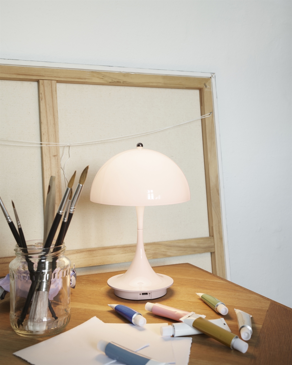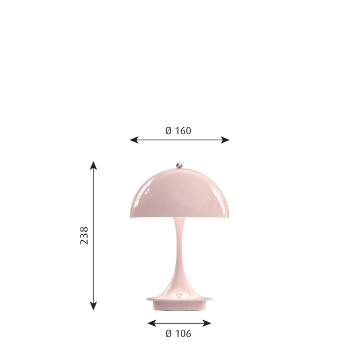 Louis Poulsen Panthella 160 Portable Tischlampe / Akkulampe, hellrosa Acryl - entworfen von Verner Panton